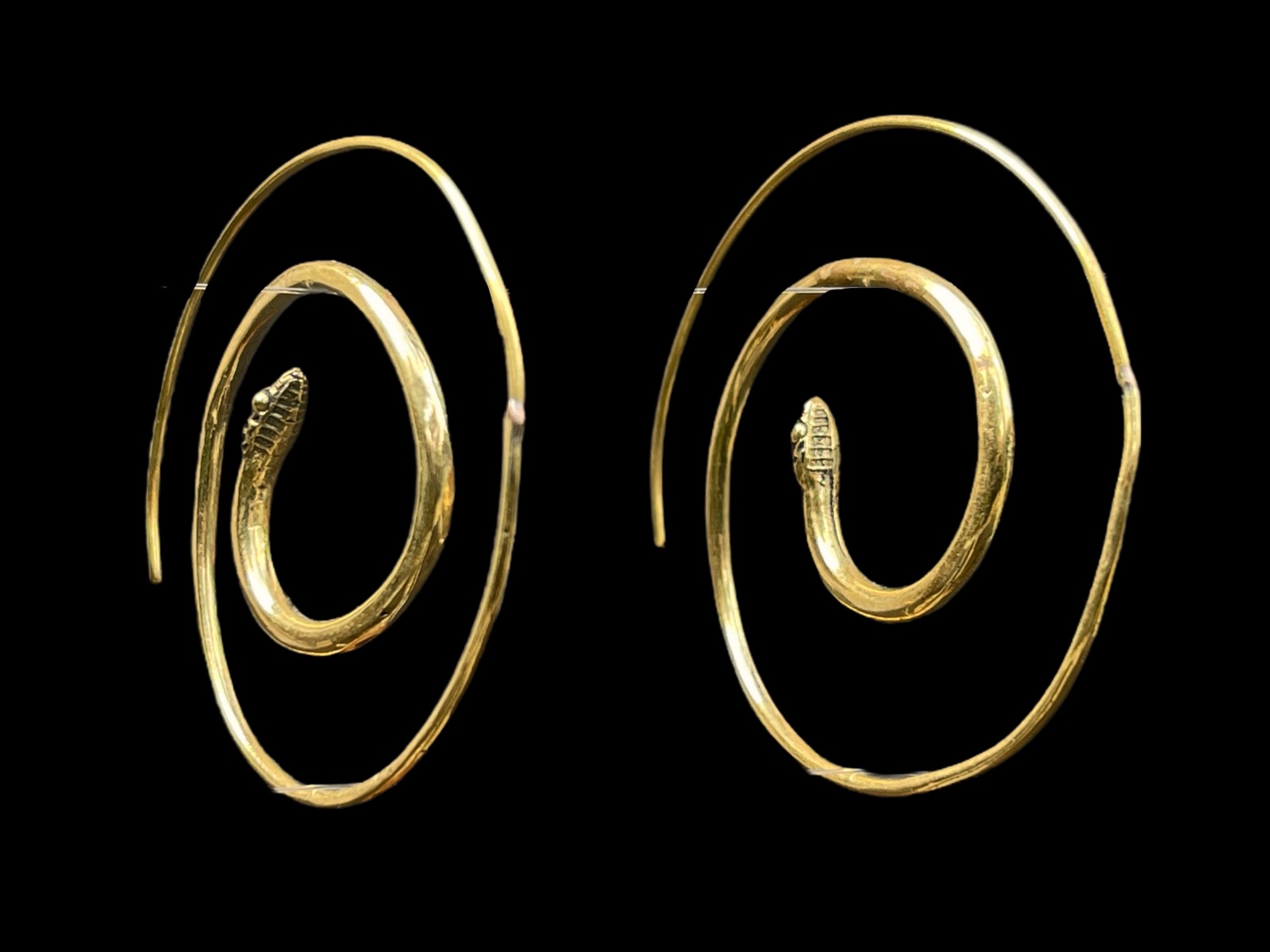 Be the first to review “A Pair Of Balinese Brass Circular Band Coiled Snake Hoop Earrings”