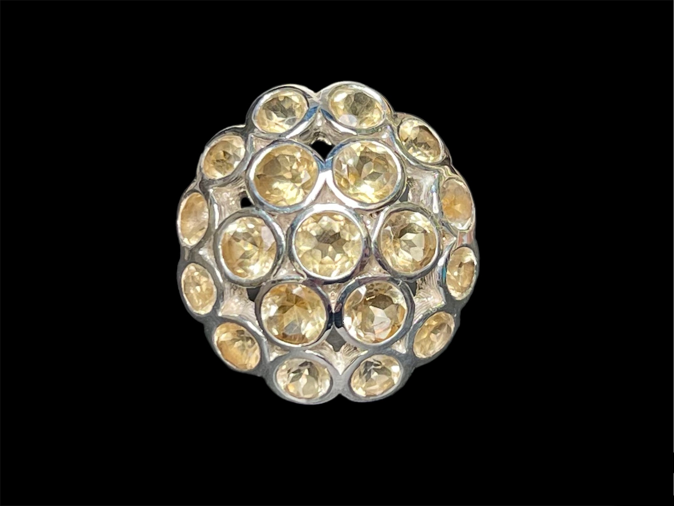 Facetted Pale Citrine Cabochons Set Into A Sterling Silver Domed Circular Ring
