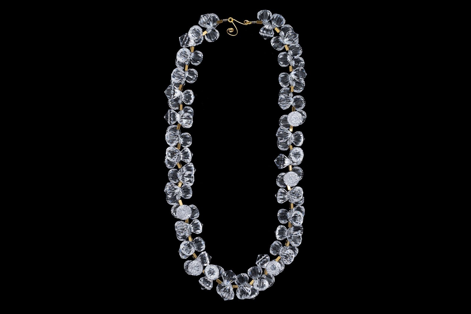 A Long Necklace With Ninety-Six Clear Resin Facetted Teardrops And Small Rectangular Brass Spacers
