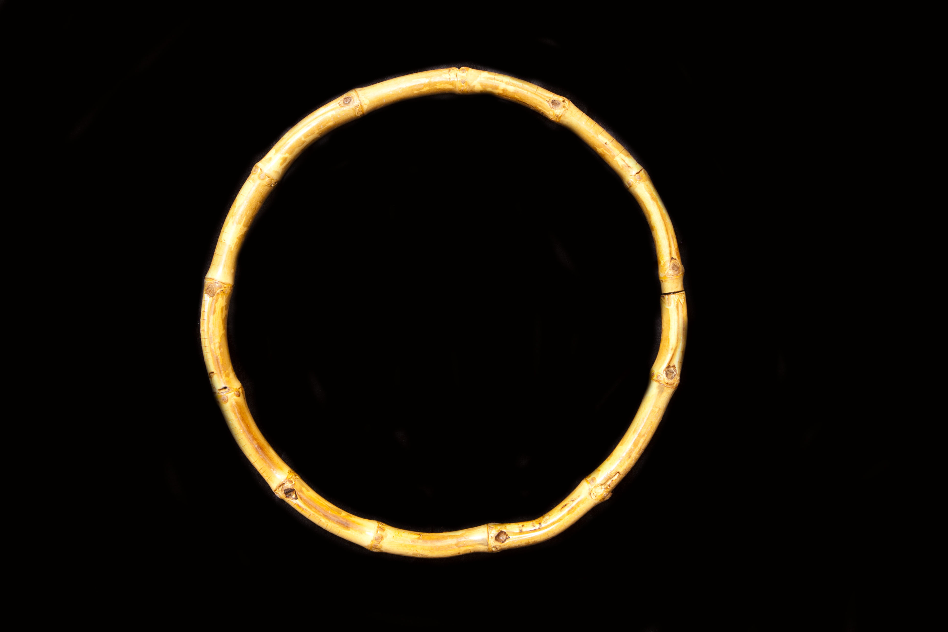 Northern Thai Bamboo Cane circular necklace. The inner diameter of the necklace is 8 inches, and the outer diameter is 9.25 inches.